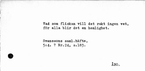 //// vi //// Vad som flickan vill det rakt ingen vet, för alla blir det en hemlighet* //// Svenssons saml.häfte, 5:4* ? Hr*24, s.I83. //// ÅBO* //// i-. ////