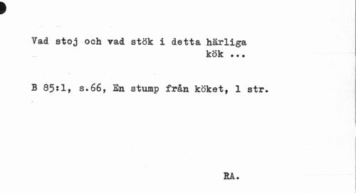 //// f //// Vad stoj och vad stök i detta härliga //// kök *•* //// B 85:1, s.66, En stump från köket, 1 str. //// EA. //// I //// 1 ////