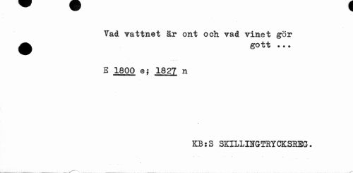 //// Vad vattnet är ont och vad vinet gör ^^ gott ••> //// E 1800 e; 1827 n //// KB:S SKILLIIGTRYCKSREG. //// / 'V ////