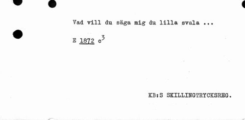//// Vad vill du säga mig du lilla svala ... ^ E 1872 o5 //// • • KBsS SKILLINGTRYCKSREG. //// / '\ y'" ////