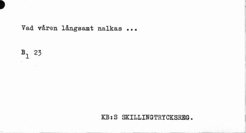 //// r //// Vad våren långsamt nalkas ••. //// Bi25 I //// ¦ //// 1 //// KB:S SKILLINGTRYCKSREG. ////