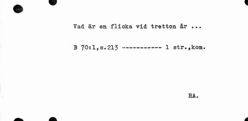 //// Yad är en flicka vid tretton år ... B 70:1,s.213 --- 1 str.,kom. //// RA. ////