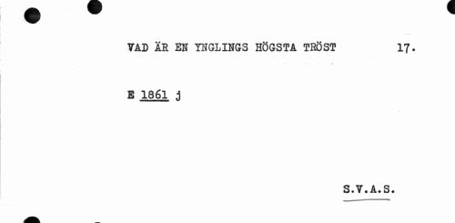 //// VAD il El YNGLINGS HÖGSTA TRÖST 17. //// • r • ¦ : //// E 1861 j //// S.V.A.S. ////