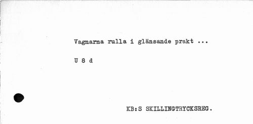 //// Vagnarna rulla i glänsande prakt ... //// U 8 d //// \ //// KBsS SKILLINGTRYCKSREG. ////