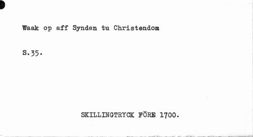 //// v //// Waak op aff Synden tu Christendom //// S.35- //// SKILLING-TRYCK FÖRE 1700. ////