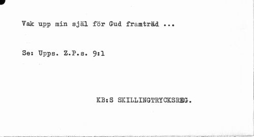 //// Tak upp min själ för Gud framträd Se: Upps. Z.P.s. 9:1 //// i j //// K3:S SKILLINGTRYCKSREG. ////