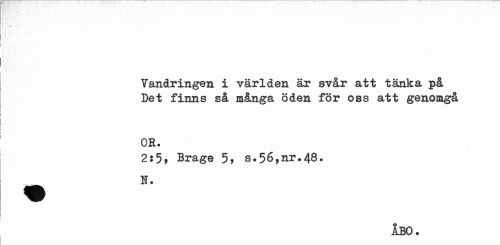 //// Vandringen i världen är svår att tänka på Det finns så många öden för oss att genomgå //// OR. //// 2:5» Brage 5» s.56,nr.48. //// K. //// ÅBO. ////