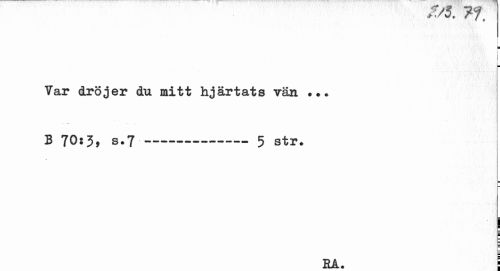 //// m //// i //// Var dröjer du mitt hjärtats vän //// ... //// B 70:3, s.7---5 str. //// f //// ¦ II ¦ //// i //// RÅ. I ////
