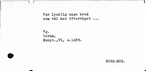 //// v / 1 //// >-v. //// Var lyeklig unga brud //// 4 //// som väl har öfvervägat ... Vg. //// Lerum, //// Mskpt»,VI, s.1489* //// N01B.MUS. ////