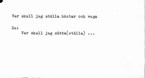 //// Var skall jag ställa hästar och vagn Se: //// Var skall jag sätta(ställa) ... //// i i ////