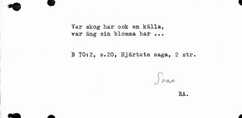 //// Yar skog har ock en källa, var äng sin "blomma har . •. //// B 70:2, s. 20, Hjärtats saga, 2 str. //// RA. ////