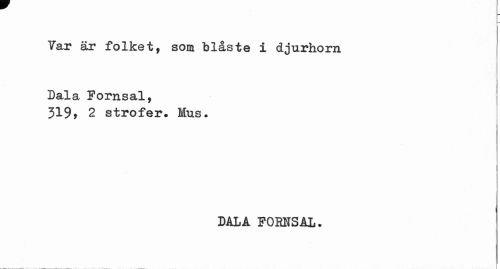 //// Var är folket, som blåste i djurhorn //// Dala Fornsal, 319, 2 strofer. Mus. //// DALA FOBISAL. ////