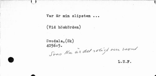 //// Var är min slipsten ... (Vid höskörden) //// Svedala,(Sk) //// 4056:5. //// ^ L.U.F. ////