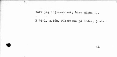 //// Vare ja g löjtnant ack, huru gärna ... //// ...» - v //// B 98:1, s.160, Flickorna på Söder, 3 str. W> RA. ////