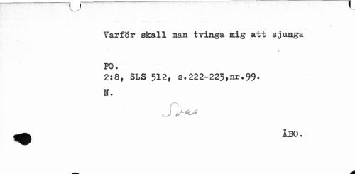 //// v.-,-' //// Varför skall man tvinga mig att sjunga //// » //// / //// PO. //// 2:8, SLS 512, s.222-223,nr.99. N. //// J //// m ////