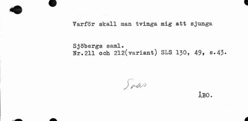 //// Varför skall man tvinga mig att sjunga Sjöbergs saml. //// Nr.211 och 212(variant) SLS 130, 49» s.43» //// ÅBO. //// -. a A ////