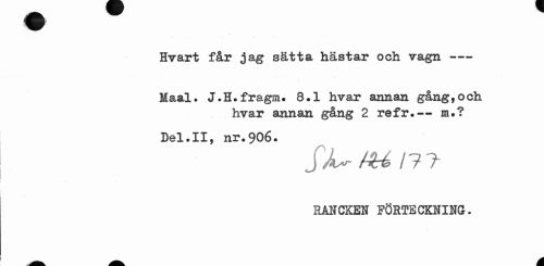 //// Hvart får jag sätta hästar och vagn--- //// Maal. J.H.fragnw 8.1 hvar annan gång,och //// hvar annan gång 2 refr.- nu? //// Del.II, nr.906. //// jX- !U l?T //// RANCKEN FÖRTECKNING. //// a. A ////
