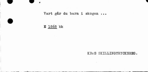 //// Yart går du barn i skogen ... E 1868 kk //// KB:S SKILLINGTRYCKSREG. //// . - - jft.. - .. . ... „ _ ^ ^ hu..*^ ___ ////