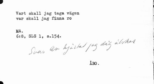 //// j //// Yart skall jag taga vägen //// ¦ //// var skall jag finna ro //// ... //// MA. j //// 6:8, SLS 1, 8.154* //// i //// km. j ////