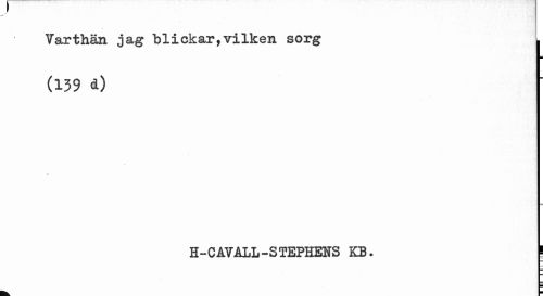 //// Varthän jag bliokar,vilken sorg //// (139 <0 //// H-CÅVALL-STEPHENS KB. | ////