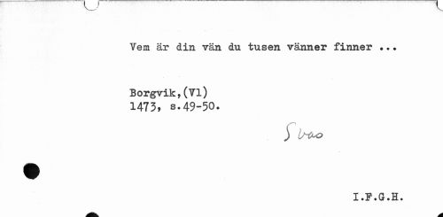 //// Vem är din vän du tusen vänner finner ..? Borgvik,(Vi) //// 1473, s.49-50. //// ) Utu> //// X • G # H« ////