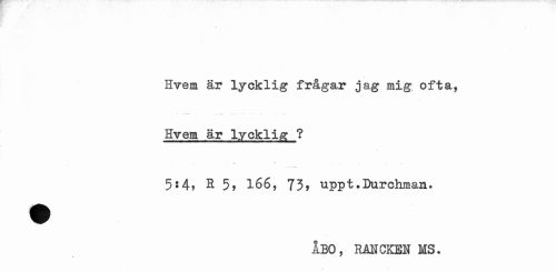 //// Hvem är lycklig frågar jag mig ofta, //// Hvem är lycklig ? //// 5:4, H 5, 166, 73* uppt .Ihirchman. //// ÅBO, RåNCKEN MS- ////