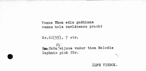 //// Venus Then edla gudhinna venus hela ?/erldzensz pracht //// . . >u ¦ - //// 1 M il //// Nr.62(55)» 7 str. //// A/y ' //// Sen Skön fwijsza vnder then Melodie //// •Daphnis gick för. //// V' //// .T //// iLFS VISBOK. ////