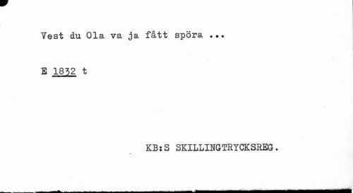 //// Test du Ola va ja fått spöra ... //// B 1852 t //// KBsS SKILLINGTRYCKSREG. ////