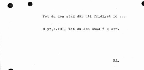//// Tet du den stad där uti fridlyst ro ... //// j -. //// B 97,s.101, Vet du den stad ? 4 str. //// RA. ////