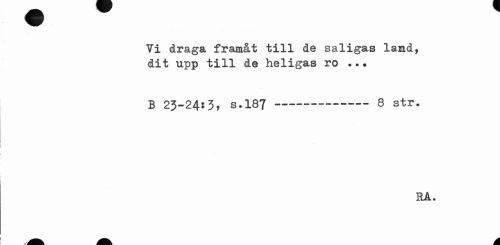 //// Vi draga framåt till de saligas land, dit upp till de heligas ro ... //// B 23-24:3, s.187---8 str. //// RA. //// it*. jk ////