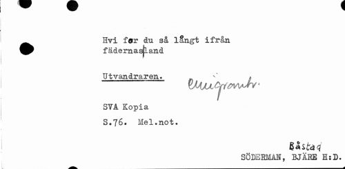 //// - ^ //// ^ Hvi far du så långt ifrån //// f ädernasjland //// Utvandraren. ^ * //// xM/ACfftwJv1 //// STA Kopia //// S.76. Mel.not. //// SÖDEBMAH, BJÄRE H:D. ////