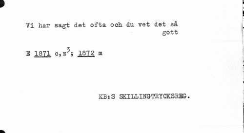 //// W L //// t ( //// Yi har sagt det ofta och du vet det så . //// gott //// t //// E 1871 c,z5; 1872 m //// k //// u //// : 1 //// ! i- //// KB:S SKILLINGTRYCKSREG. } //// i //// fe. //// ¦b. ////