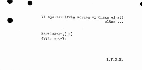 //// ~ W I //// ^^ Yi hjältar ifrån Horden vi önska ej att //// slåss • # • //// Eskilsäter,(Hl) //// 4971, b.6-J. //// X »F • G • H • ////