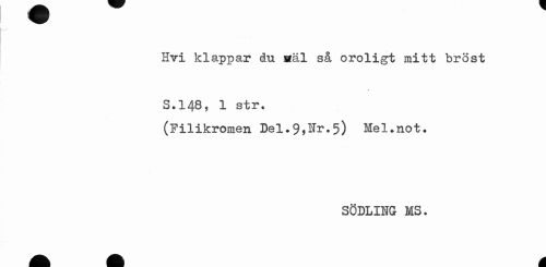 //// Hvi klappar du mäl så oroligt mitt bröst //// * //// S.148, 1 str. //// (Filikromen Del.9fHr.5) Mel.not. //// SÖDLIHG MS. ////