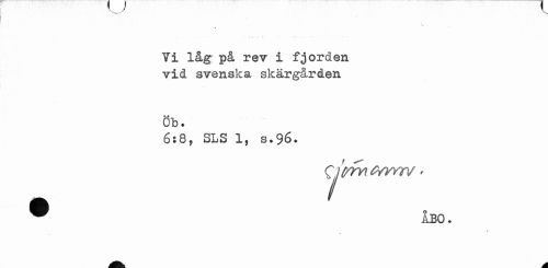 //// 'v, \ //// * . : « .. - ... //// Vi låg på rev i fjorden vid svenska skärgården //// Öb. //// 6;8, SLS 1, s.96. ® ÅBO. //// t //// > * //// ^fct A ////