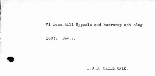 //// Vi resa till Uppsala med hurrarop och sång 1883. Bev.v. //// L.U.B. SKILL.OTIK. ////
