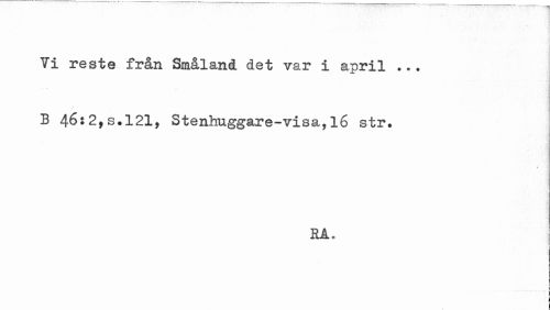 //// Vi reste från Småland det var i april ... B 46;2,s.121, Stenhuggare-visa,16 str. //// • < //// RA. //// I ////