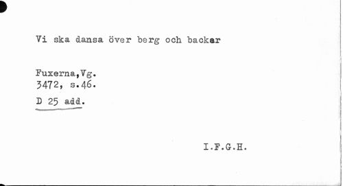 //// "Vi ska dansa över berg och backar //// i i //// Fuxerna f¥g. 3472, s.46. //// 13 25 add. ////