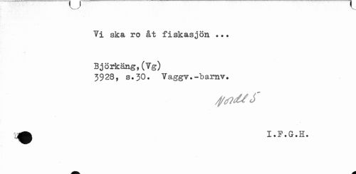 //// Vi ska ro åt fiskasjön //// » //// Björkäng,(7g) //// 3928, s.30. Vaggv.-barnv. //// ^ I.F.G.H. ////