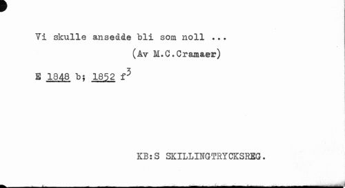 //// r //// Ti skulle ansedde bli som noll ... //// (Av M.G.Cramaer) //// E 1348 b; 1852 f3 ; //// KB:S SKILLINGTRYCKSREG. //// fet. ___.___Jl»___... _¦ . __-___- - - : ////