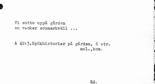 //// > i //// Ti sutto uppå gården en vacker sommarkväll ... //// ¦ //// A 42:3,Spökhistorier på gården, 6 str. //// mel.,kom. , //// RA. 1 ////