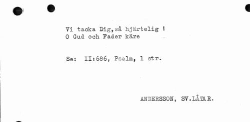//// w • - //// Yi tacka Dig,så hjärtelig ! O Gud och Fader käre //// Se: 11:686, Psalm, 1 str. //// ANDERSSON, SY.LMAR. ////