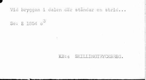 //// Vid bryggan i dalen där ståndar en strid... Se: E 1854 o° //// KB:s SKILLINGTRYCKSREG. ////