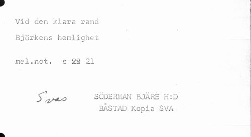 //// Vid den klara rand Björkens hemlighet //// mel.not. s 29 21 //// SÖDERMAN BJÄRE H:D BÅSTAD Kopia SVA //// k ////