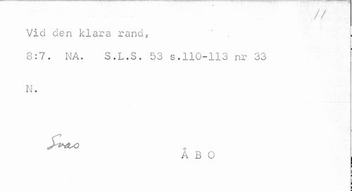//// ¦ ¦ ... // //// Vid den klara rand. //// 8:7. NA. S.L.S. 53 s.110-113 nr 33 N. //// A B O | //// ¦ //// i ////