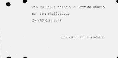 //// Vid kullen i dalen vid löfrika bäcken se: Fem stallbroder Norrköping 1841 //// LUB SKILL:TR PROSAREG. //// A ////