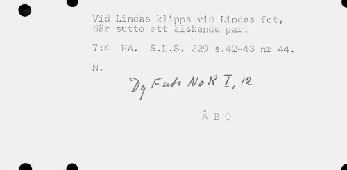 //// Vid Lindas klippa vid Lindas fot, där sutto ett älskande par, //// v //// 7:4 HA. S.L.S. 329 s.42-43 nr 44. N. //// ^ fcob AJo tf T, KL //// ÅBO //// t //// A A M ////