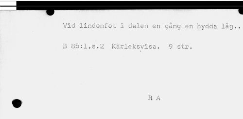 //// Vid lindenfot i dalen en gång en hydda låg.. B 85:1,9.2 Kärleksvisa. 9 str. //// M //// • R A //// L //// 9 ////