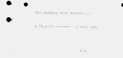 //// • « //// Vid medgång reva seglen... B 75,s.73 i str. kom. //// R A ////