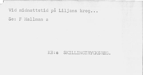 //// Vid midnattstid på Liljans krog... Se; F //// Hallman a //// 5 //// • • : //// H //// KB:a SKILLINGTRYCKSREG. ////